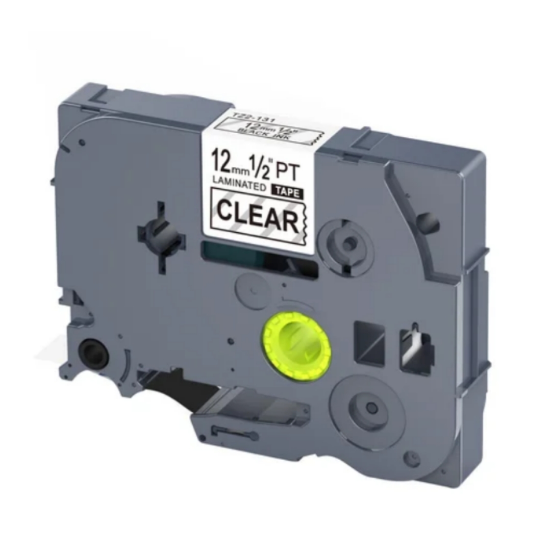Cinta Brother Tze-131, Tz2-131 (12mm x 8mts), letra Negra sobre transparente, Compatible