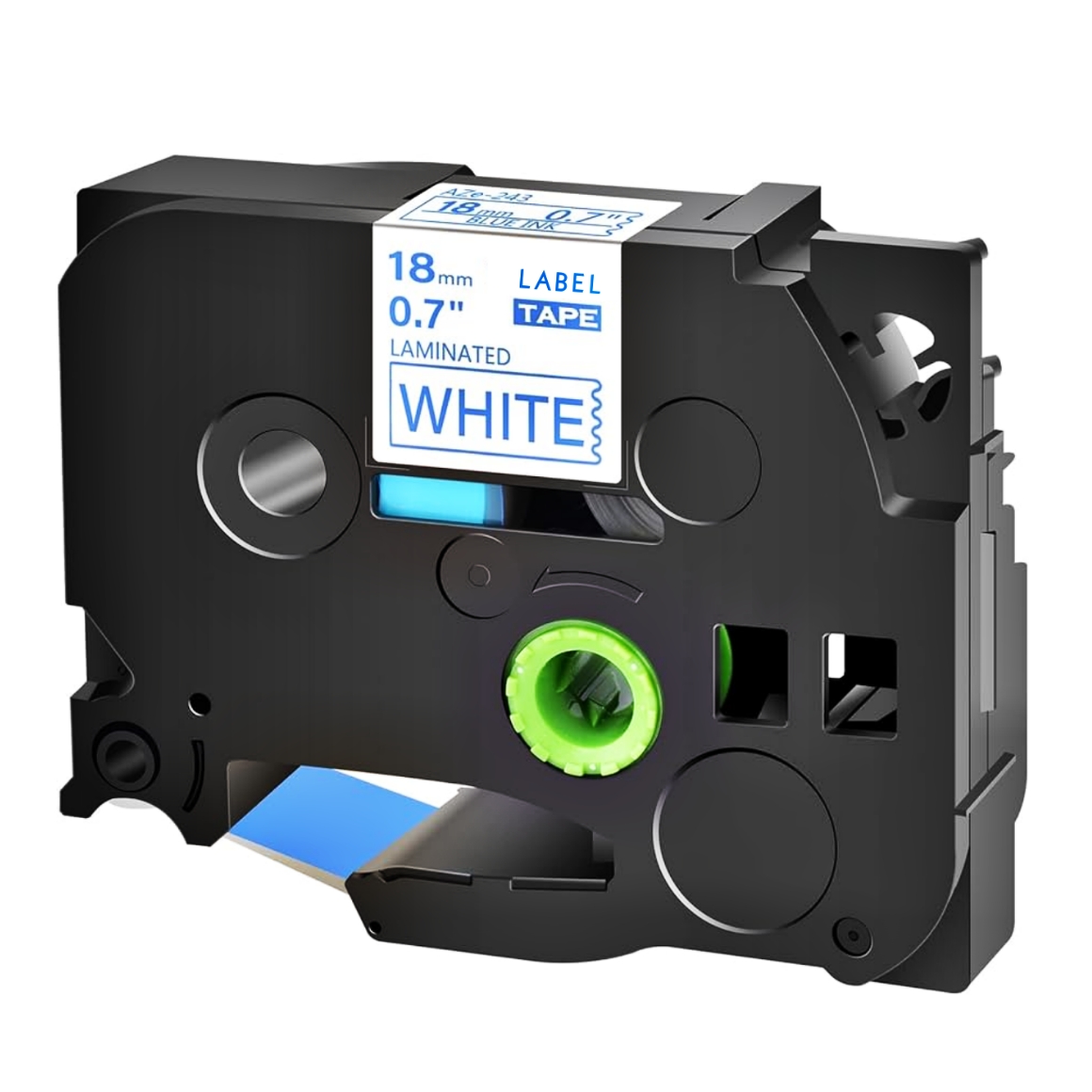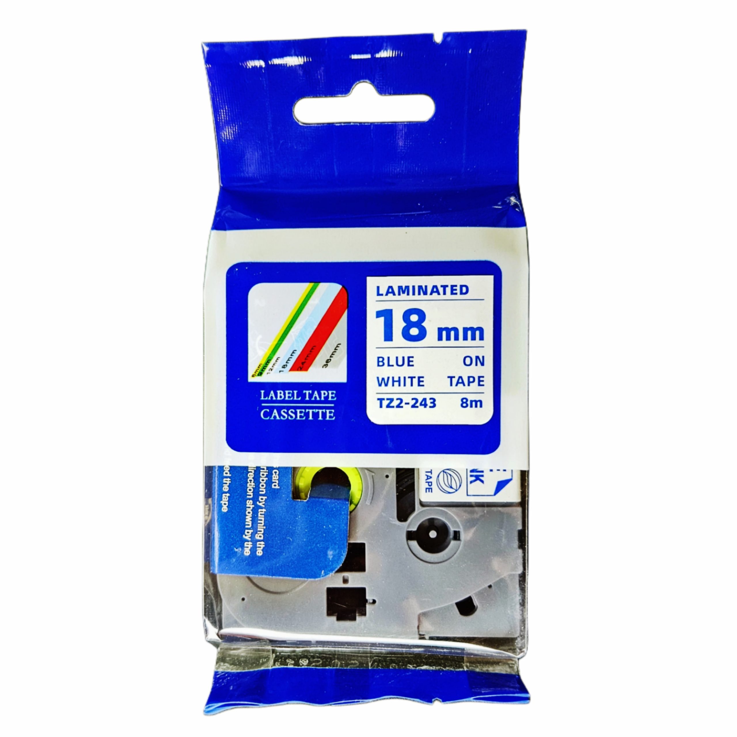 Cinta Brother Tze-243, Tz2-243 (18mm x 8mts), letra Azul sobre Blanco, Compatible