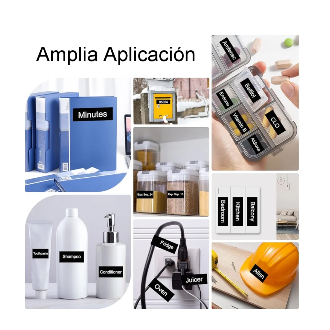 - Uso en: ideal para etiquetar sobres, paquetes, cajas de almacenamiento, carpetas y más.