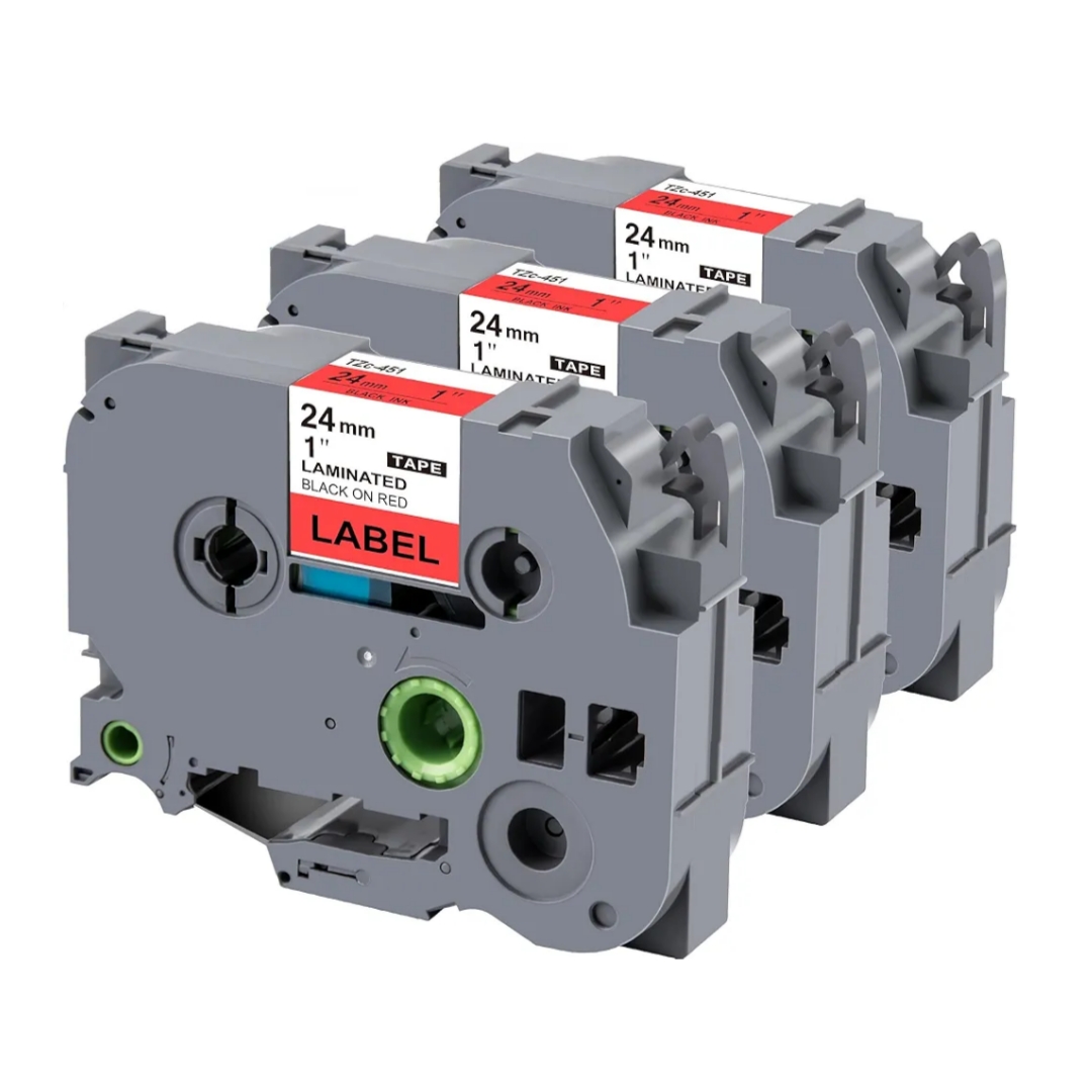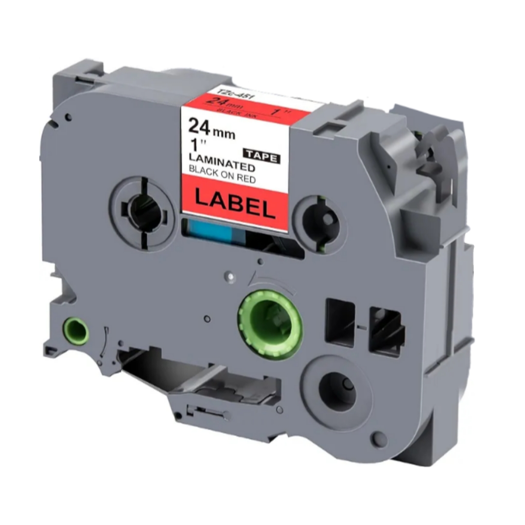 Cinta Brother Tze-451, Tz2-451 (24mm x 8mts), letra negra sobre Rojo, Compatible