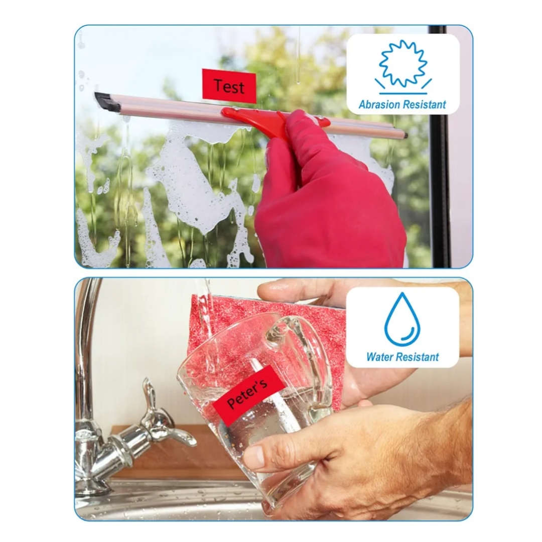Se pueden utilizar para aplicaciones en interiores y exteriores, adecuada para el hogar, oficina, escuela, industria de Telecomunicaciones, almacén, laboratorio de química, hotel, para etiquetar cocina, estanterías, gabinetes de suministros, en congeladores, microondas, lavavajillas, hospital y etiquetado de condimentos, archivos, carpetas, estantes y libros. Utilizadas para un etiquetado general en superficies lisas y planas, crean etiquetas claramente legibles por mucho tiempo.