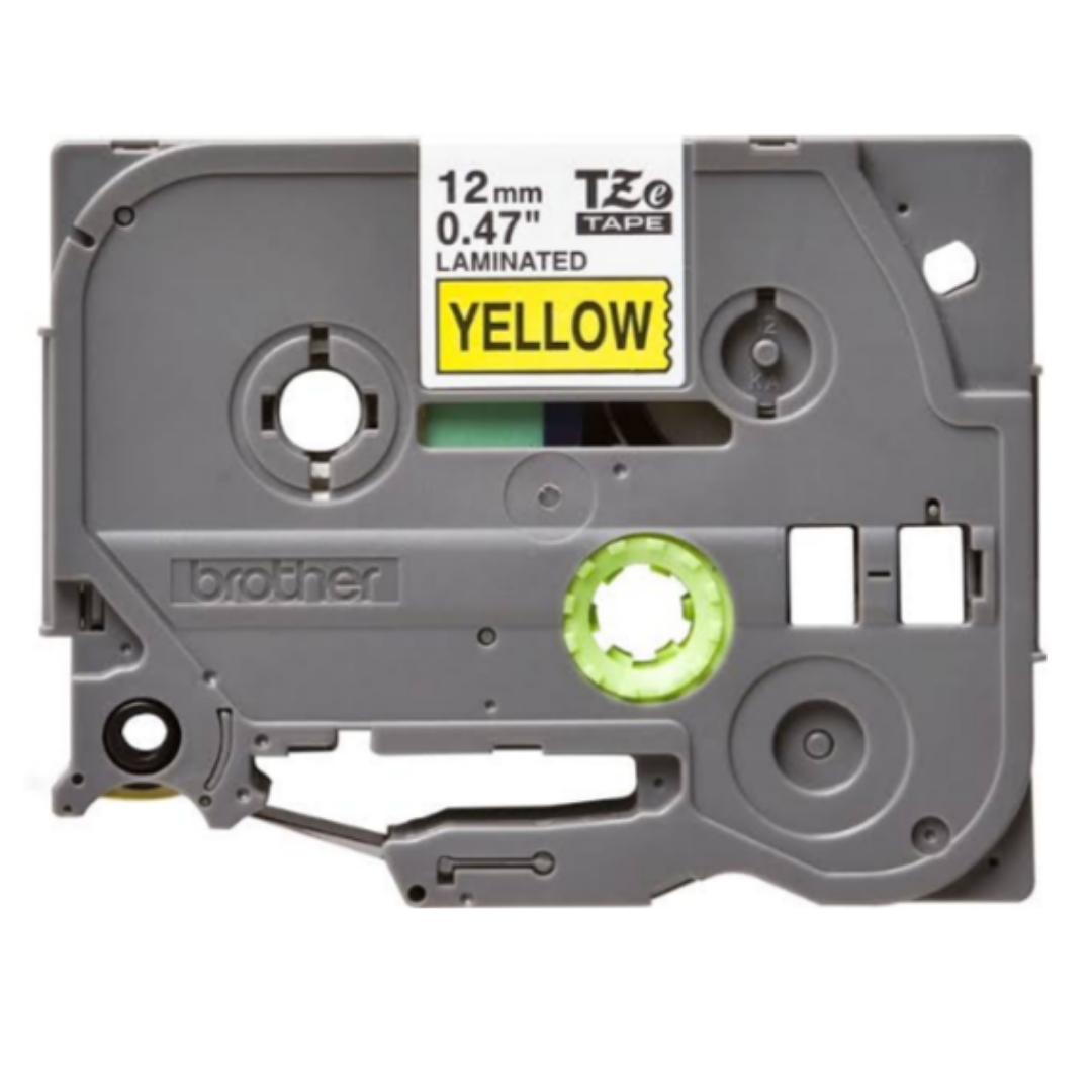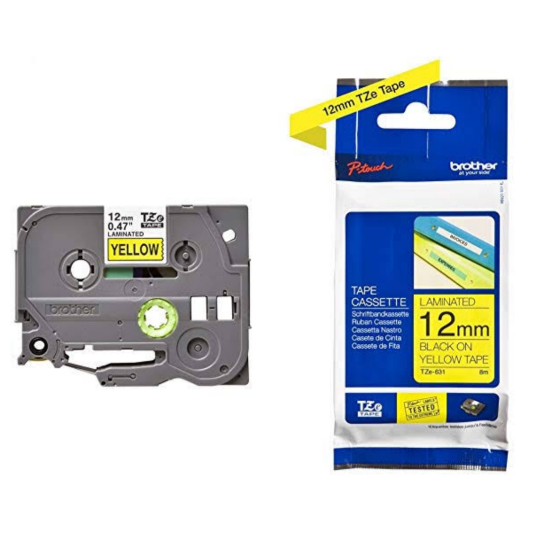 Cinta Brother Tze-631 (12mm x 8 mts), letra negra sobre fondo amarillo, Original